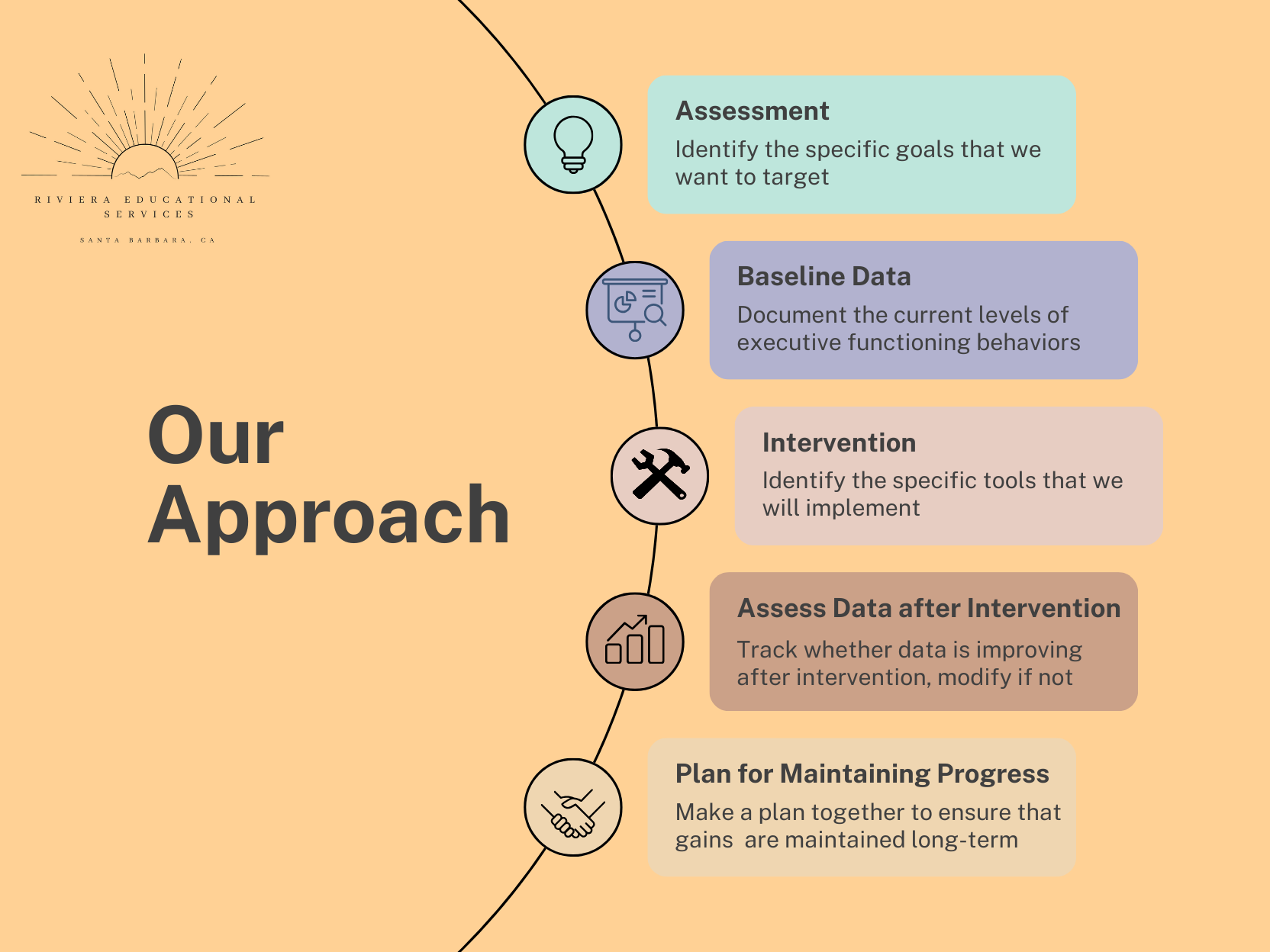 Riviera Educational Services can help adults grappling with executive functioning challenges. Our tailored coaching programs are designed to empower individuals in honing crucial skills such as time management, organization, goal setting, and problem-solving. We work collaboratively with clients, fostering self-awareness and providing personalized strategies to enhance overall executive functioning. Whether navigating the complexities of daily tasks, managing stress, or striving for professional success, our programs are finely tuned to address the unique needs of each individual. At Riviera Educational Services, we believe in equipping adults with the tools they need to thrive in both personal and professional spheres, promoting a sense of confidence and capability in the face of executive functioning difficulties.